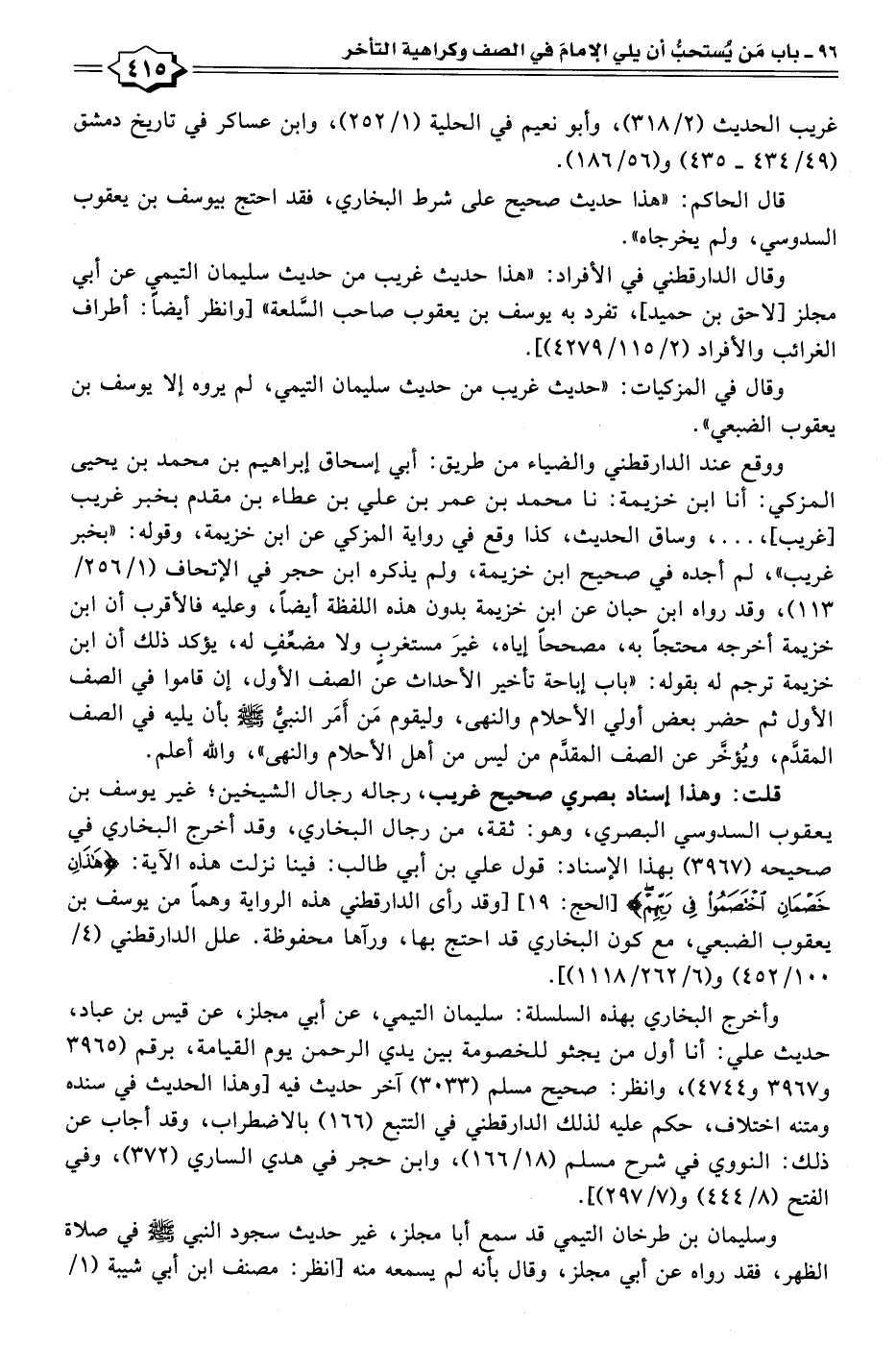 وقال الدارقطني في الأفراد: "هذا حديث غريب من حديث سليمان التيمي عن أبي مجلز [لاحق بن حميد]، تفرد به يوسف بن يعقوب صاحب السَّلعة" [وانظر أيضًا: أطراف الغرائب والأفراد (٢/ ١١٥/ ٤٢٧٩)].