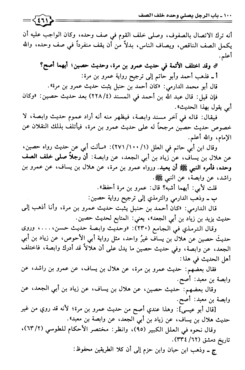 وقال نحوه في العلل الكبير (٩٥)، وانظر: مختصر الأحكام للطوسي (٢/ ٦٣)، تاريخ دمشق (٦٢/ ٣٣٤).