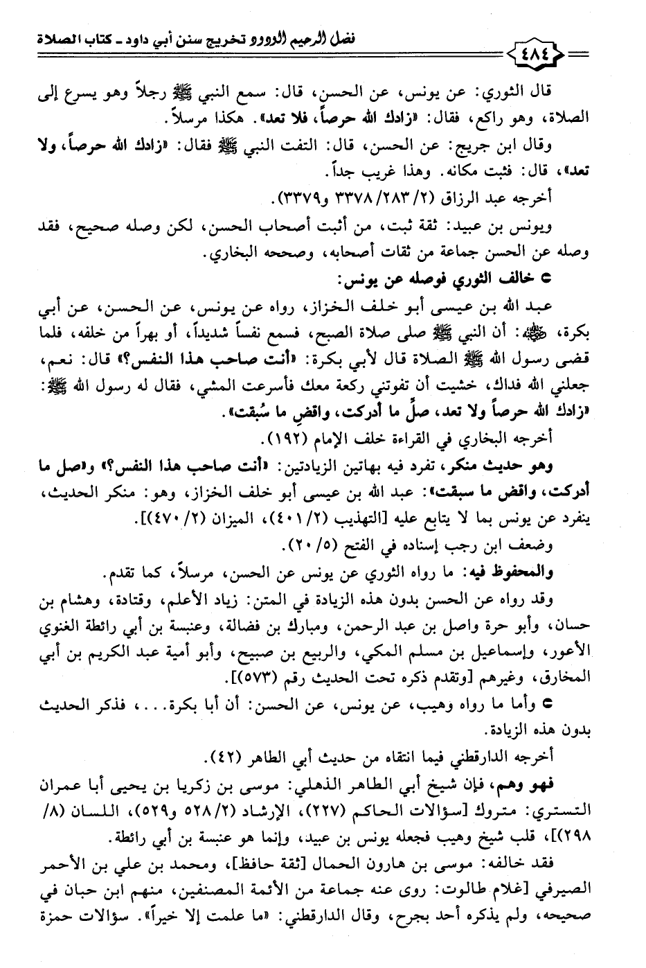 قال الثوري: عن يونس، عن الحسن، قال: سمع النبي - صلى الله عليه وسلم - رجلًا وهو يسرع إلى الصلاة، وهو راكع، فقال: "زادك الله حرصًا، فلا تعد". هكذا مرسلًا.