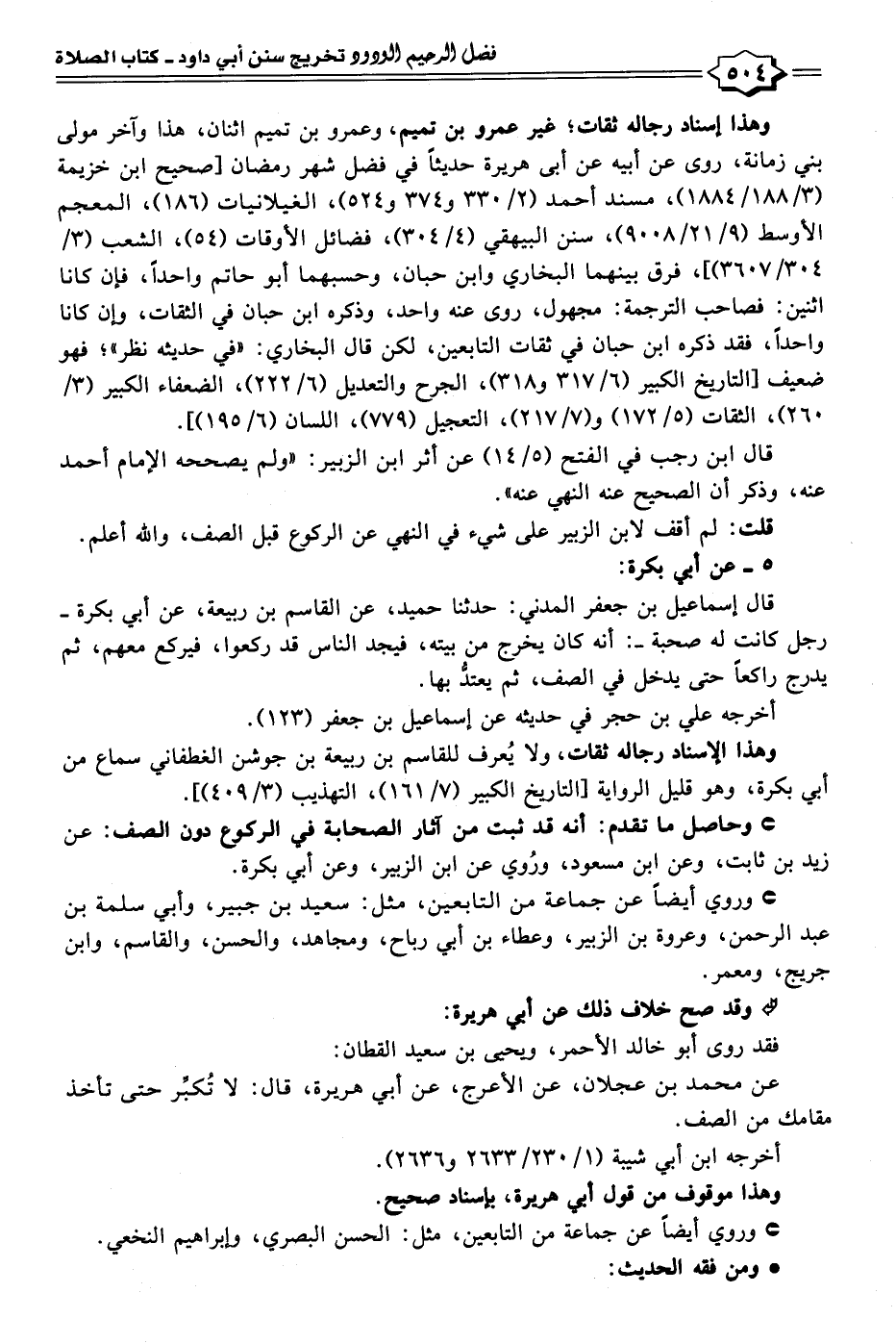 • وحاصل ما تقدم: أنه قد ثبت من آثار الصحابة في الركوع دون الصف: عن زيد بن ثابت، وعن ابن مسعود، ورُوي عن ابن الزبير، وعن أبي بكرة.