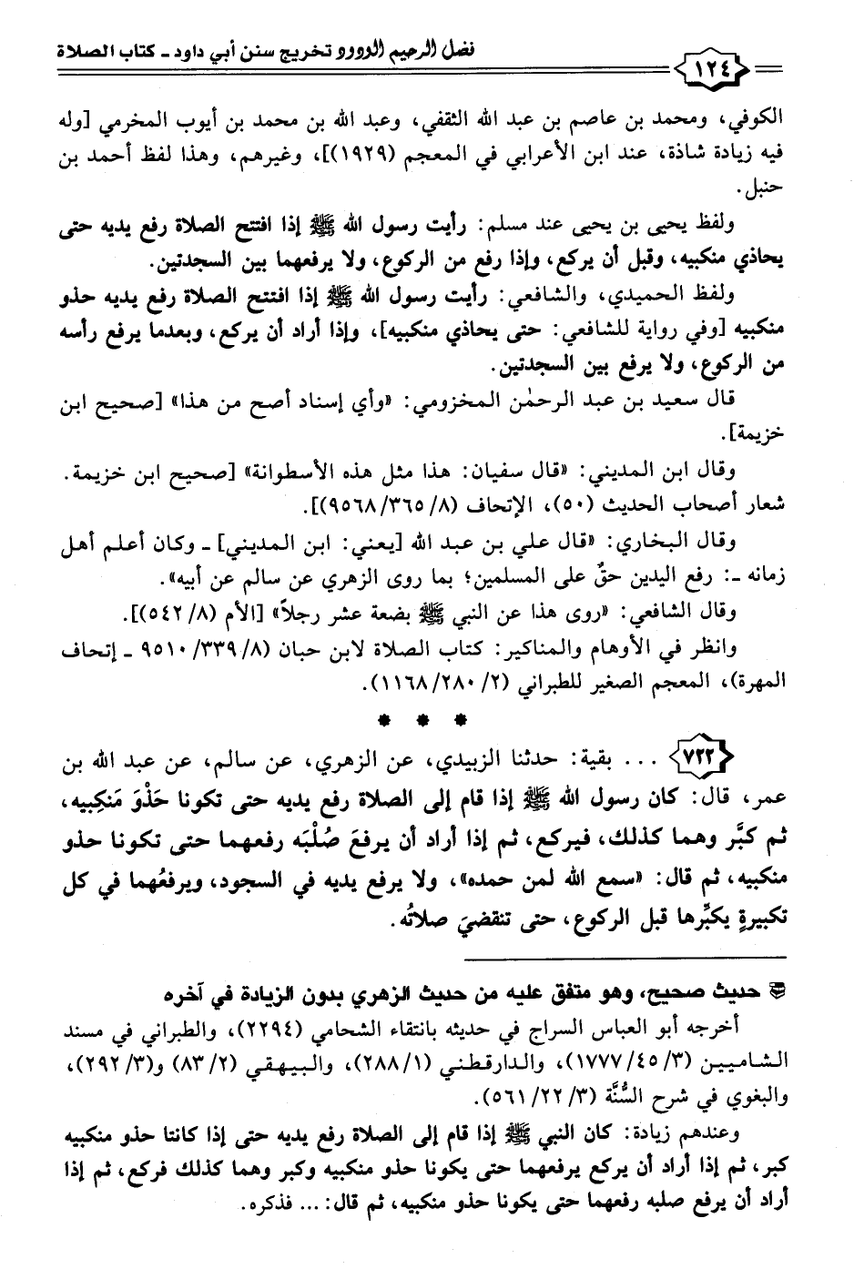 وقال البخاري: "قال علي بن عبد الله [يعني: ابن المديني]-وكان أعلم أهل زمانه-: رفع اليدين حقٌّ على المسلمين؛ بما روى الزهري عن سالم عن أبيه".
