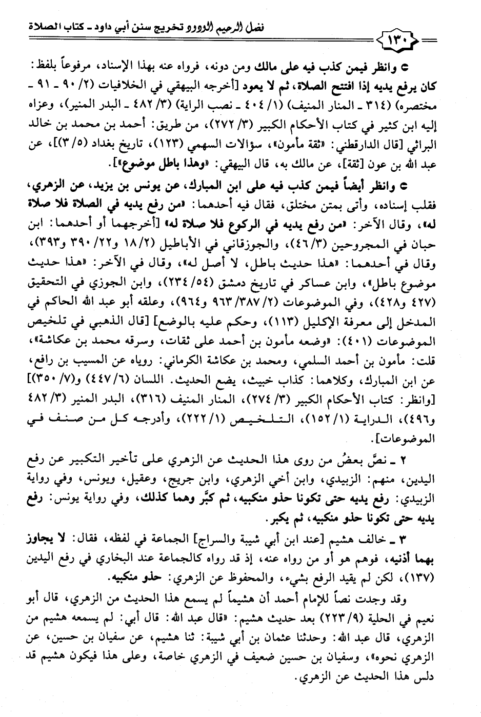 ٢ - نصَّ بعضُ من روى هذا الحديث عن الزهري على تأخير التكبير عن رفع اليدين، منهم: الزبيدي، وابن أخي الزهري، وابن جريج، وعقيل، ويونس، وفي رواية الزبيدي: رفع يديه حتى تكونا حذو منكبيه، ثم كبَّر وهما كذلك، وفي رواية يونس: رفع يديه حتى تكونا حذو منكبيه، ثم يكبر.