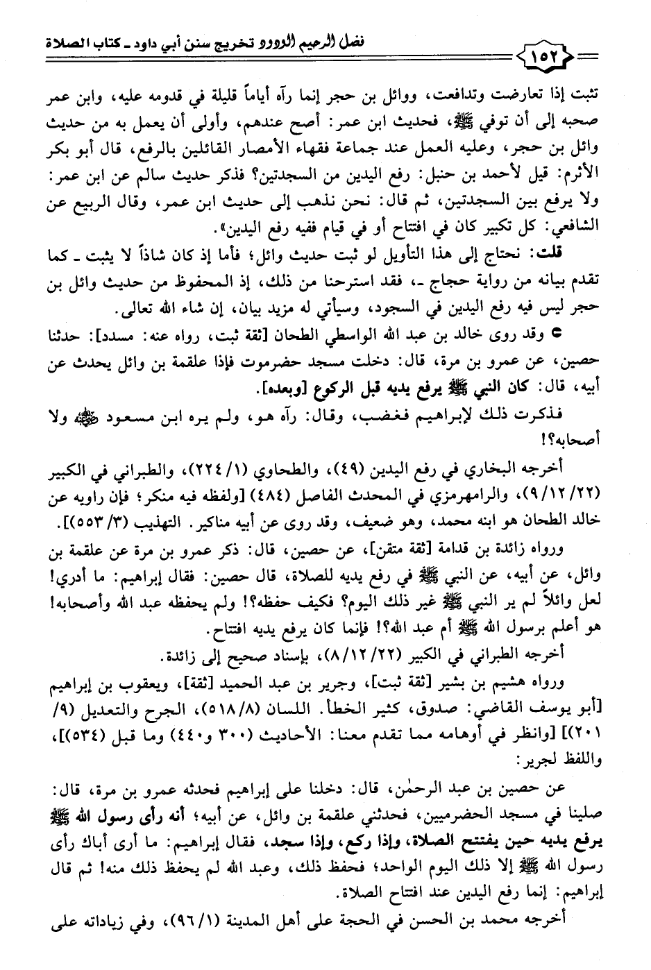 قلت: نحتاج إلى هذا التأويل لو ثبت حديث وائل؛ فأما إذ كان شاذًا لا يثبت -كما تقدم بيانه من رواية حجاج-، فقد استرحنا من ذلك، إذ المحفوظ من حديث وائل بن حجر ليس فيه رفع اليدين في السجود، وسيأتي له مزيد بيان، إن شاء الله تعالى.