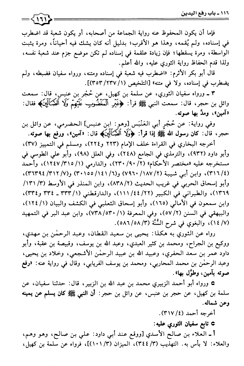 ٣ - ورواه سفيان الثوري، عن سلمة بن كهيل، عن حُجْر بن عنبس، قال: سمعت وائل بن حجر، قال: سمعت النبي - صلى الله عليه وسلم - قرأ: {غَيْرِ الْمَغْضُوبِ عَلَيْهِمْ وَلَا الضَّالِّينَ} فقال: "آمين"، ومدَّ بها صوته.