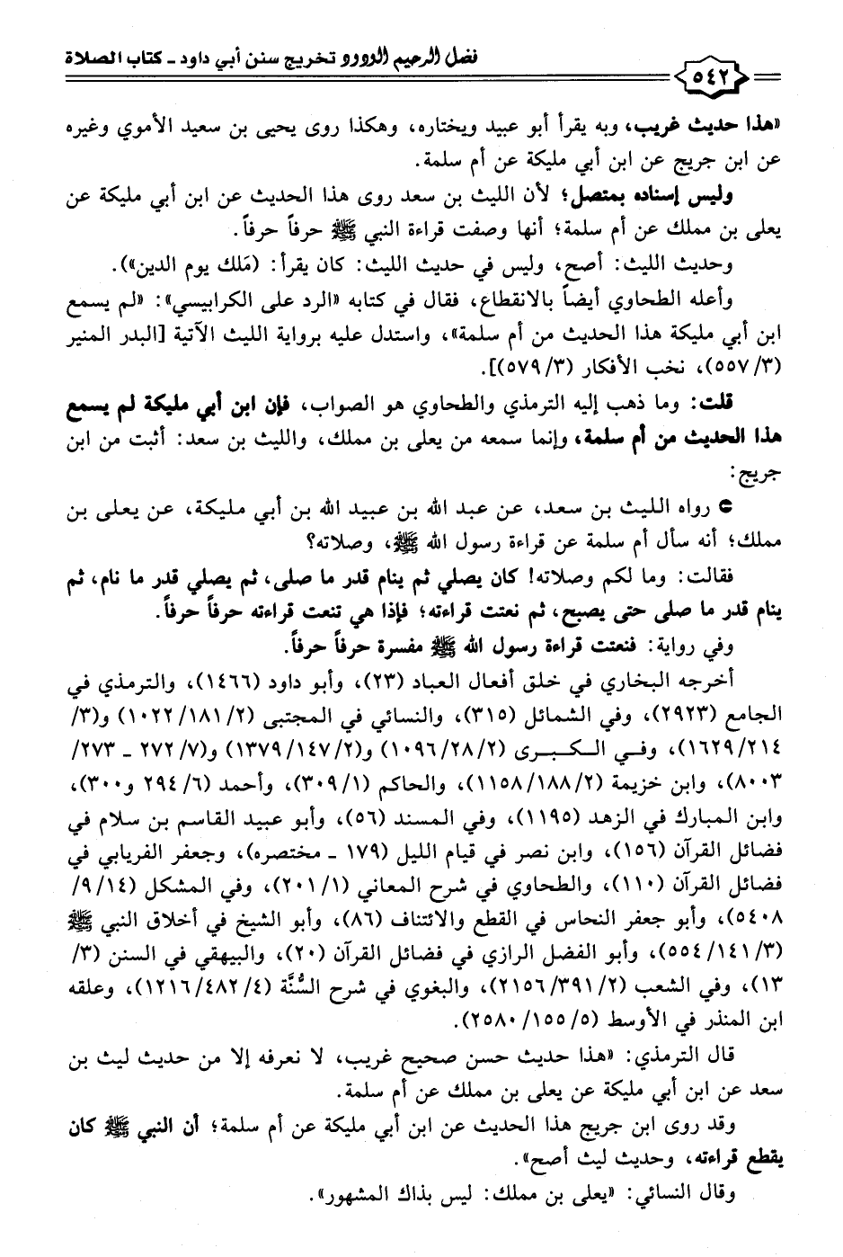 "هذا حديث غريب، وبه يقرأ أبو عبيد ويختاره، وهكذا روى يحيى بن سعيد الأموي وغيره عن ابن جريج عن ابن أبي مليكة عن أم سلمة.