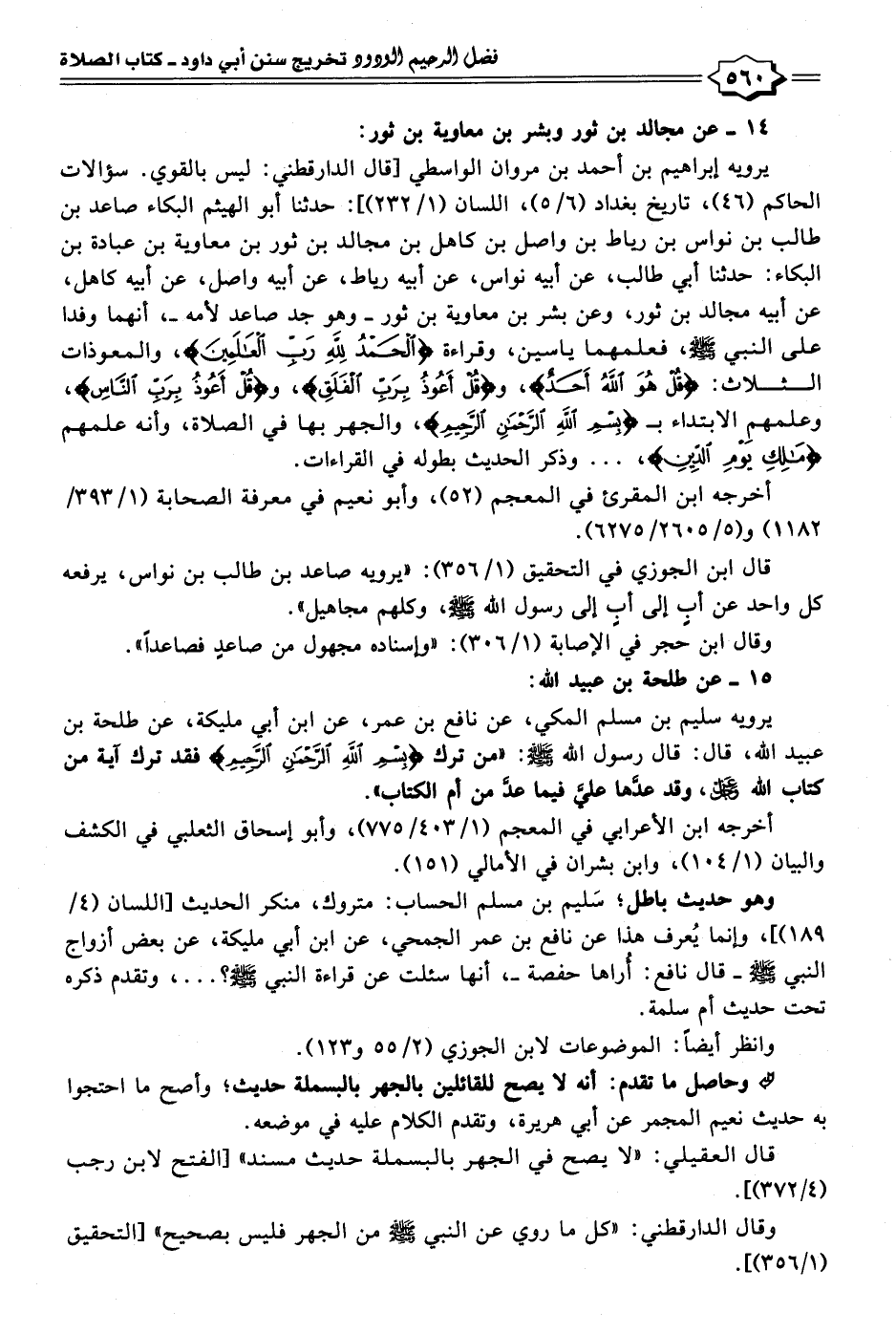 قال العقيلي: "لا يصح في الجهر بالبسملة حديث مسند" [الفتح لابن رجب (٤/ ٣٧٢)].