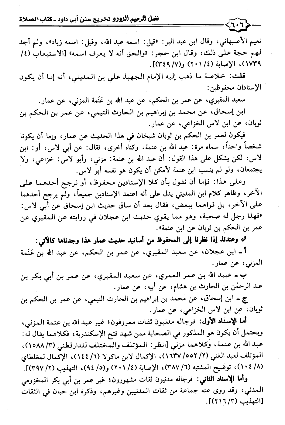 فيكون لعمر بن الحكم بن ثوبان شيخان في هذا الحديث عن عمار، وإما أن يكونا شخصًا واحدًا، سماه مرة: عبد الله بن عنمة، وكناه أخرى، فقال: عن أبي لاس، أو: ابن لاس، لكن يشكل على هذا القول: أن عبد الله بن عنمة: مزني، وأبو لاس: خزاعي، ولا يجتمعان، ولو لم ينسب ابن عنمة لأمكن أن يكون هو نفسه أبو لاس.