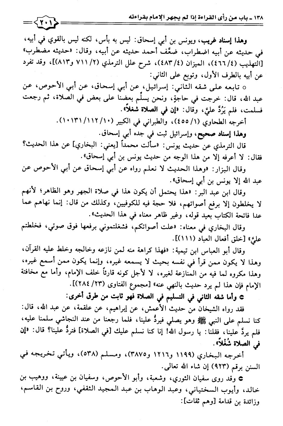 • تابعه على شقه الثاني: إسرائيل، عن أبي إسحاق، عن أبي الأحوص، عن عبد الله، قال: خرجت في حاجةٍ، ونحن يسلِّم بعضنا على بعض في الصلاة، ثم رجعت فسلمت، فلم يَرُدَّ عليَّ، وقال: "إن في الصلاة شغلًا".