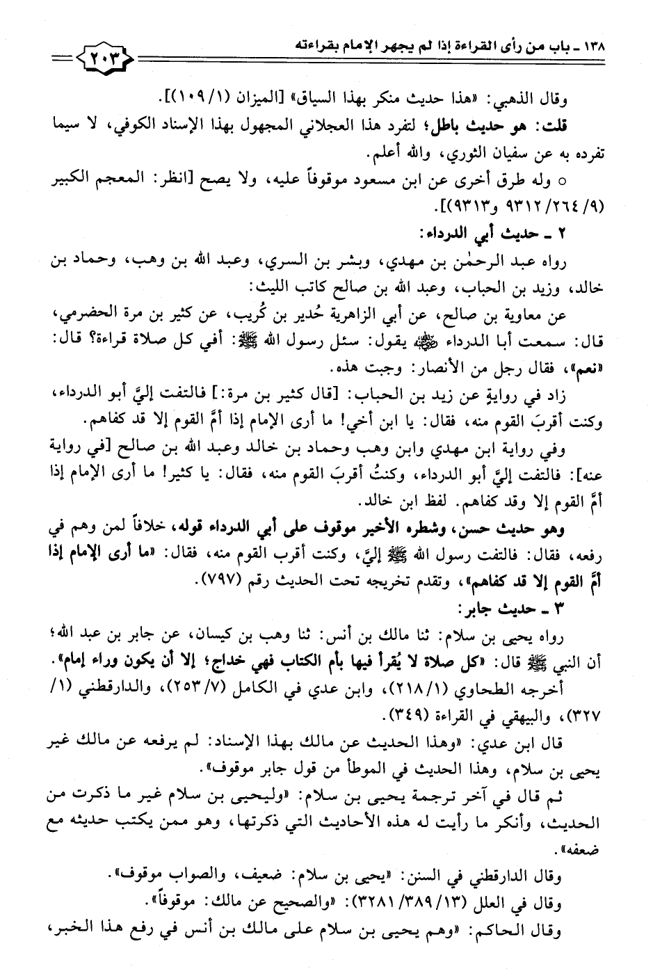 أخرجه الطحاوي (١/ ٢١٨)، وابن عدي في الكامل (٧/ ٢٥٣)، والدارقطني (١/ ٣٢٧)، والبيهقي في القراءة (٣٤٩).