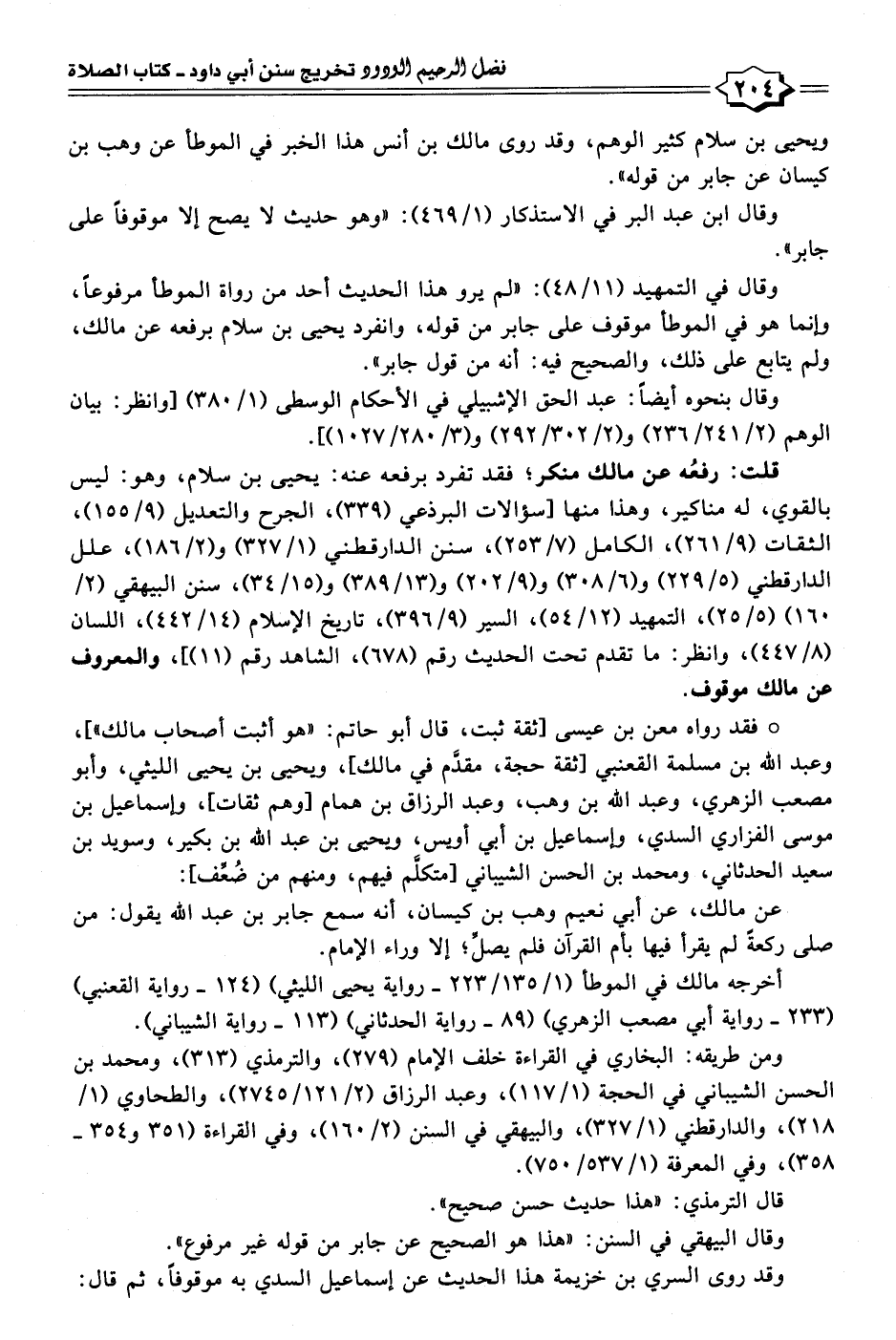 قلت: رفعُه عن مالك منكر؛ فقد تفرد برفعه عنه: يحيى بن سلام، وهو: ليس بالقوي، له مناكير، وهذا منها [سؤالات البرذعي (٣٣٩)، الجرح والتعديل (٩/ ١٥٥)، الثقات (٩/ ٢٦١)، الكامل (٧/ ٢٥٣)، سنن الدارقطني (١/ ٣٢٧) و (٢/ ١٨٦)، علل الدارقطني (٥/ ٢٢٩) و (٦/ ٣٠٨) و (٩/ ٢٠٢) و (١٣/ ٣٨٩) و (١٥/ ٣٤)، سنن البيهقي (٢/ ١٦٠) (٥/ ٢٥)، التمهيد (١٢/ ٥٤)، السير (٩/ ٣٩٦)، تاريخ الإسلام (١٤/ ٤٤٢)، اللسان (٨/ ٤٤٧)، وانظر: ما تقدم تحت الحديث رقم (٦٧٨)، الشاهد رقم (١١)]، والمعروف عن مالك موقوف.