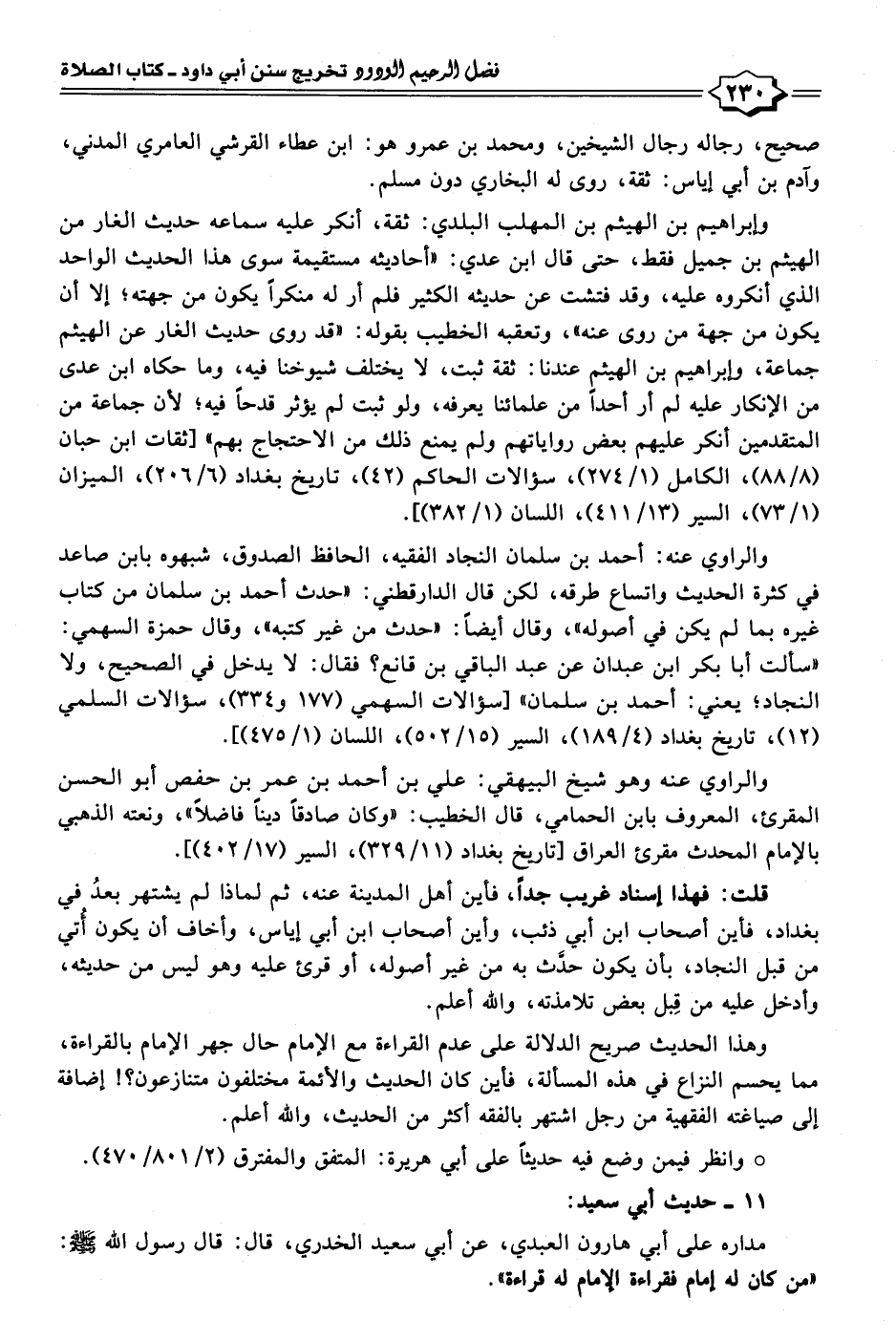 وهذا الحديث صريح الدلالة على عدم القراءة مع الإمام حال جهر الإمام بالقراءة، مما يحسم النزاع في هذه المسألة، فأين كان الحديث والأئمة مختلفون متنازعون؟! إضافة إلى صياغته الفقهية من رجل اشتهر بالفقه أكثر من الحديث، والله أعلم.