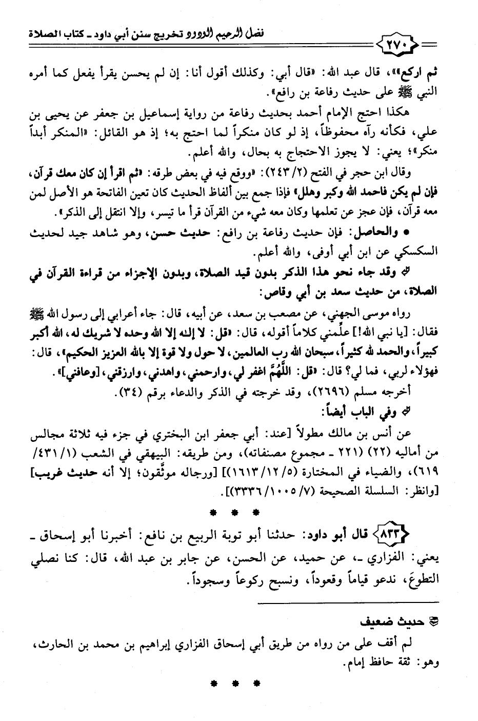 • والحاصل: فإن حديث رفاعة بن رافع: حديث حسن، وهو شاهد جيد لحديث السكسكي عن ابن أبي أوفى، والله أعلم.