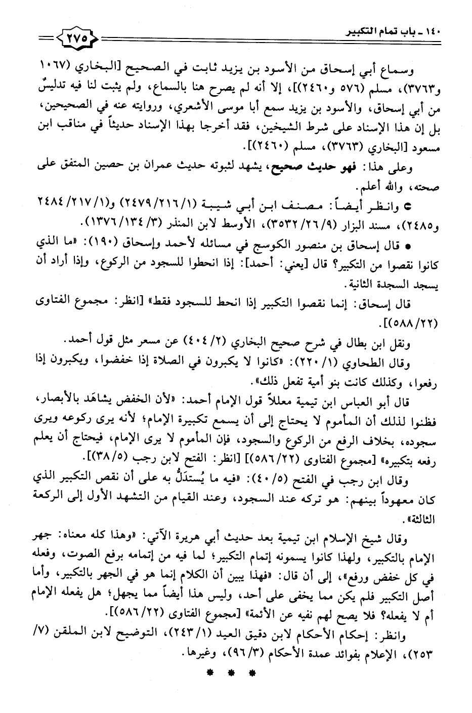 قال إسحاق: إنما نقصوا التكبير إذا انحط للسجود فقط" [انظر: مجموع الفتاوى (٢٢/ ٥٨٨)].