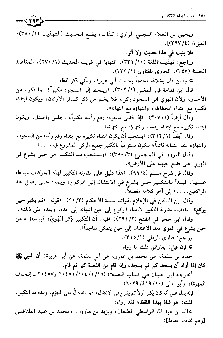 وقال أيضًا (١/ ٣٠٧): "إذا قضى سجوده رفع رأسه مكبرًا، وجلس واعتدل، ويكون ابتداء تكبيره مع ابتداء رفعه، وانتهاؤه مع انتهائه".