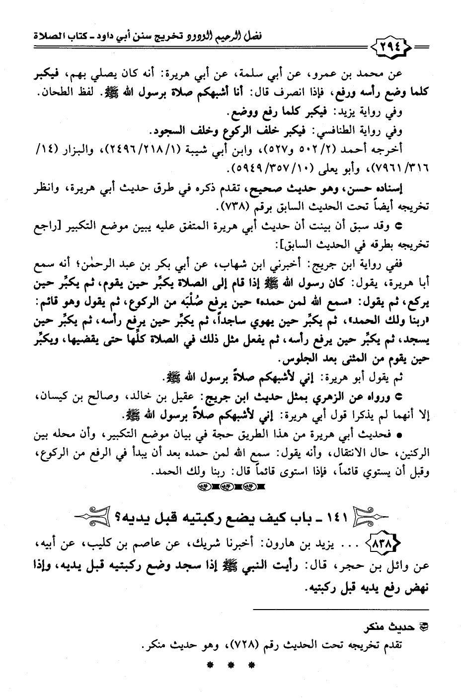 ١٤١ - باب كيف يضع ركبتيه قبل يديه؟