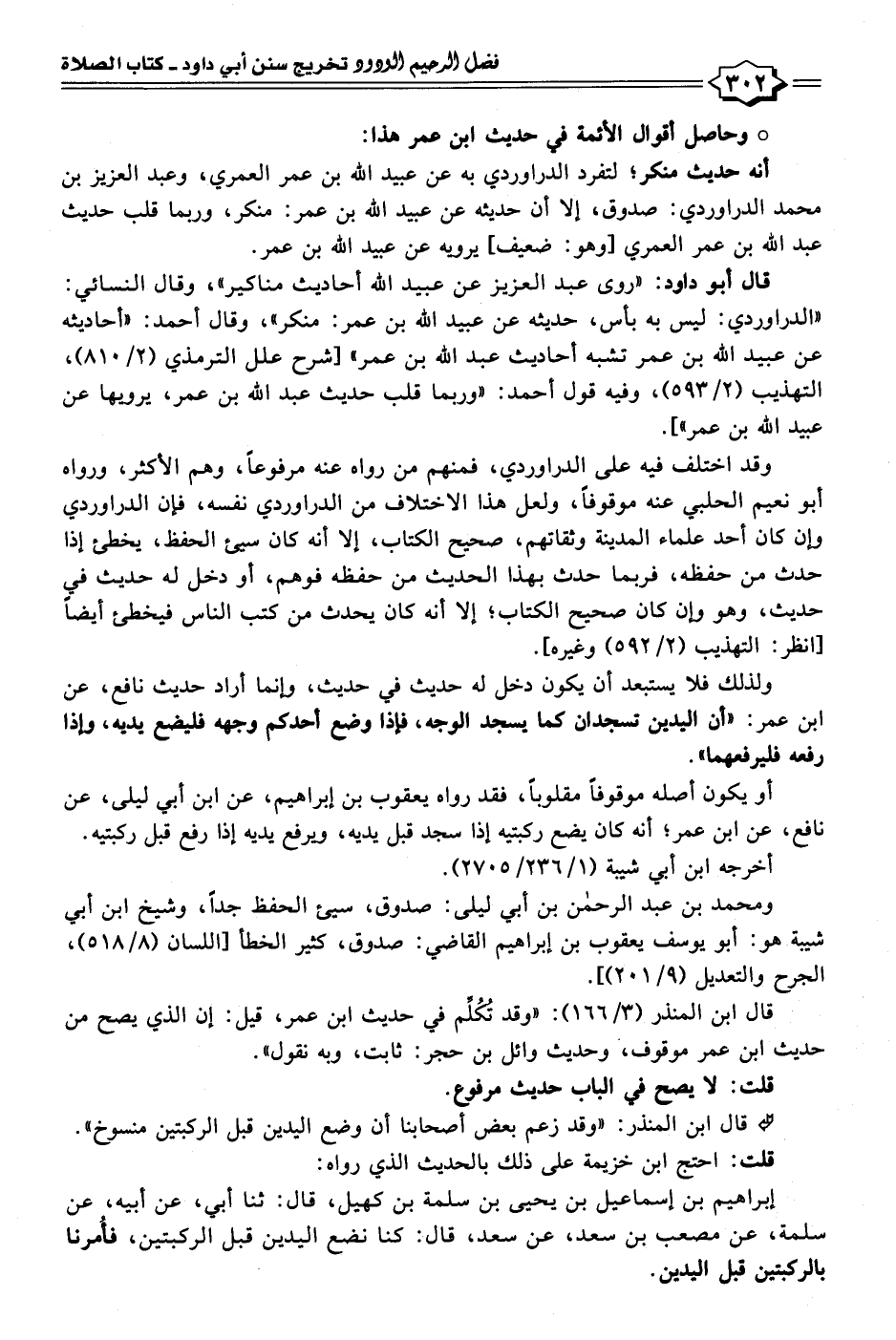 ولذلك فلا يستبعد أن يكون دخل له حديث في حديث، وإنما أراد حديث نافع، عن ابن عمر: "أن اليدين تسجدان كما يسجد الوجه، فإذا وضع أحدكم وجهه فليضع يديه، وإذا رفعه فليرفعهما".