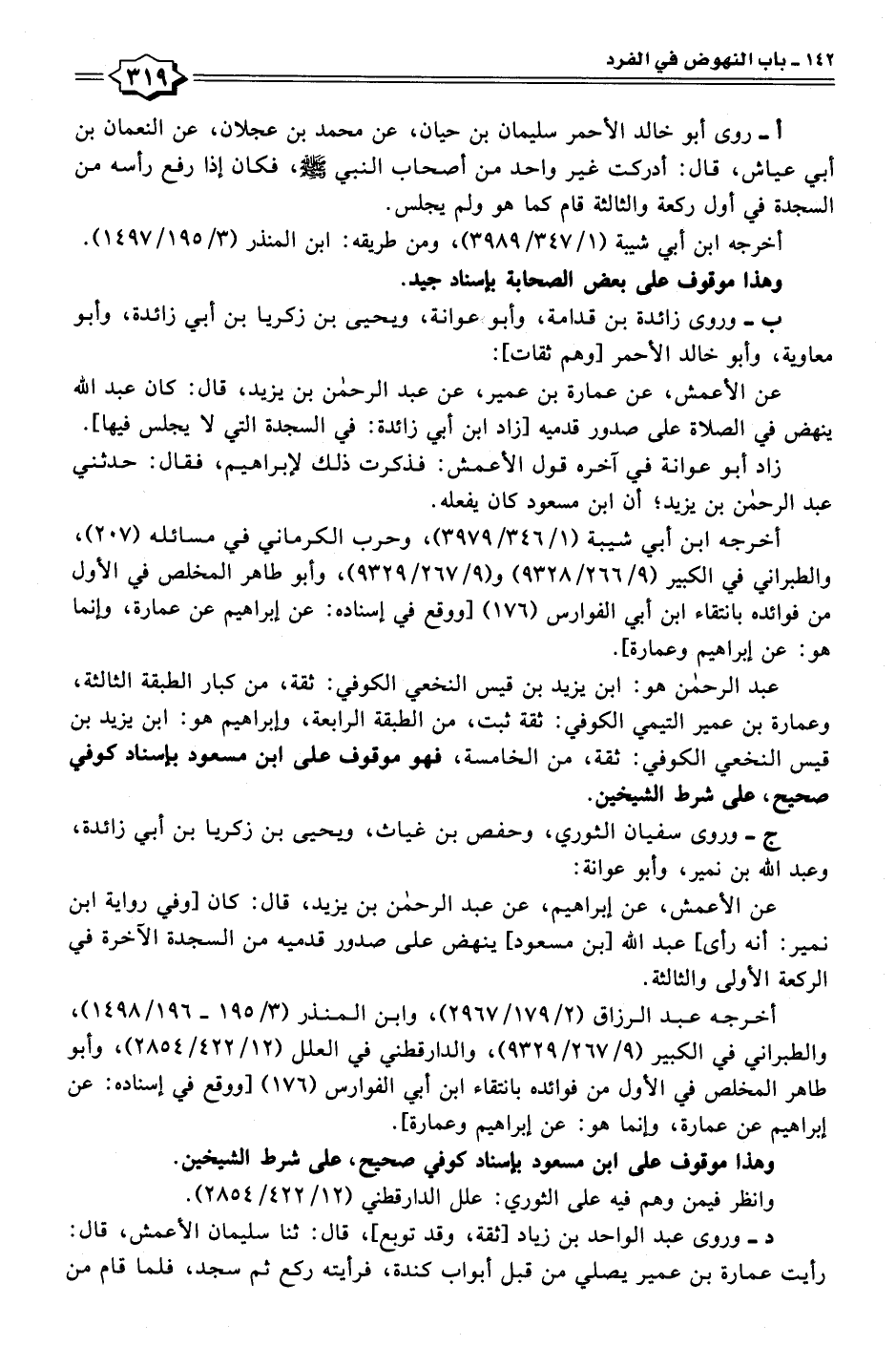 عن الأعمش، عن عمارة بن عمير، عن عبد الرحمن بن يزيد، قال: كان عبد الله ينهض في الصلاة على صدور قدميه [زاد ابن أبي زائدة: في السجدة التي لا يجلس فيها].