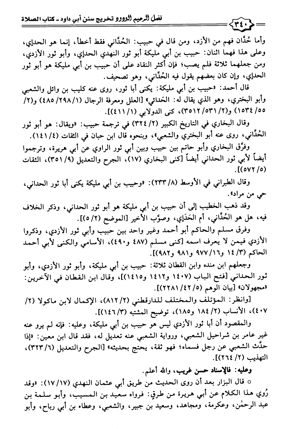 وفرَّق البخاري وأبو حاتم بين حبيب وبين أبي ثور الراوي عن أبي هريرة، وترجموا أيضًا لأبي ثور الحداني أيضًا [كنى البخاري (١٧)، الجرح والتعديل (٩/ ٣٥١)، الثقات (٥/ ٥٧٢)].