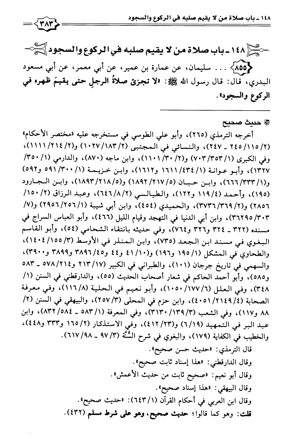 ١٤٨ - باب صلاة من لا يقيم صلبه في الركوع والسجود