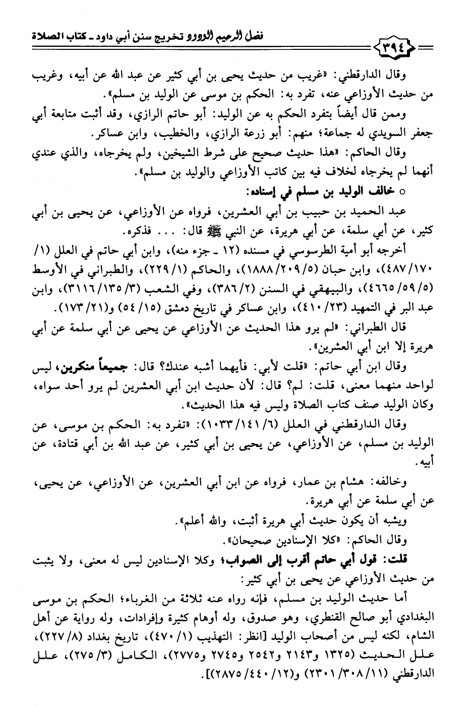 وقال الدارقطني: "غريب من حديث يحيى بن أبي كثير عن عبد الله عن أبيه، وغريب من حديث الأوزاعي عنه، تفرد به: الحكم بن موسى عن الوليد بن مسلم".