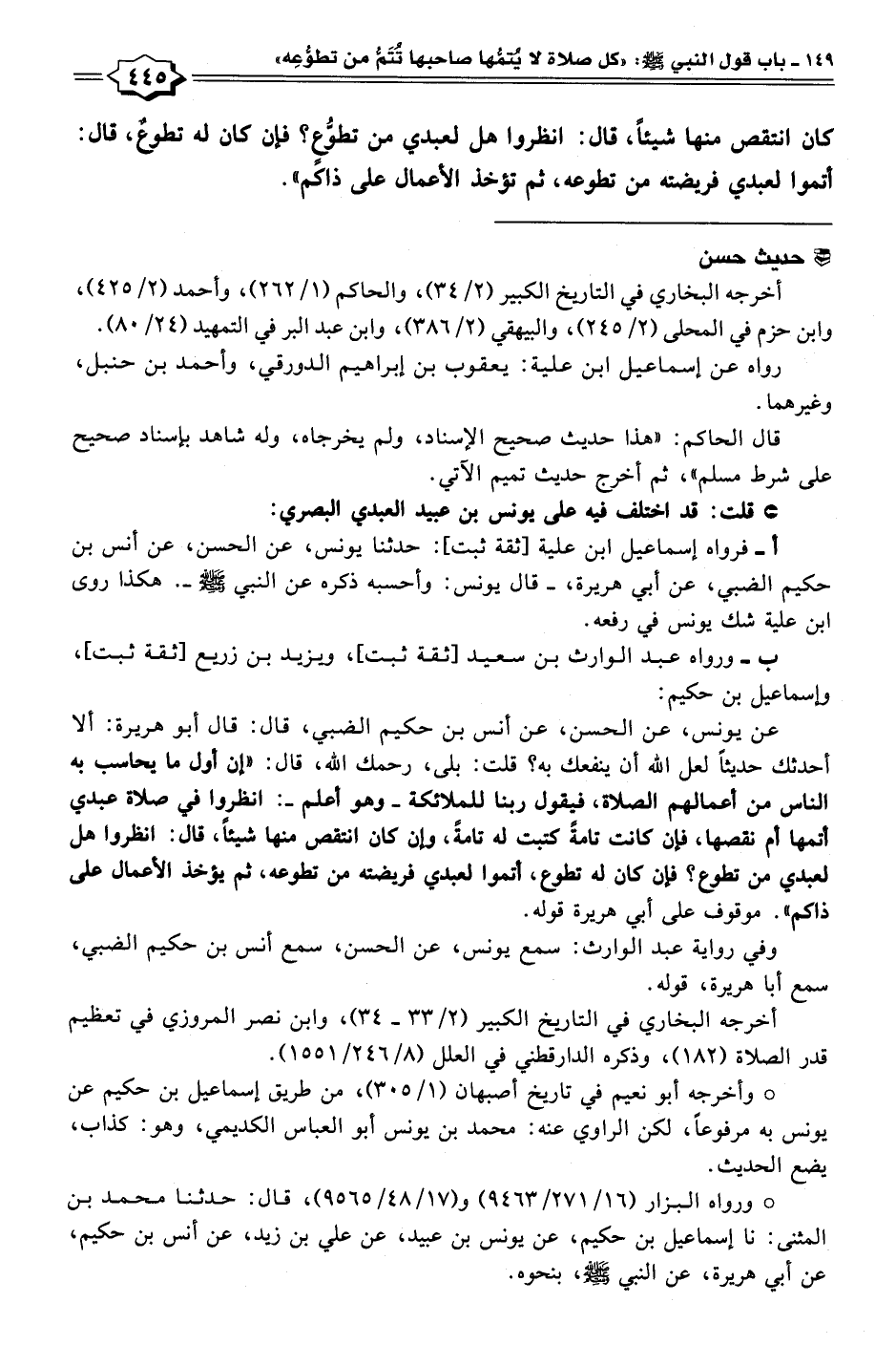 أخرجه البخاري في التاريخ الكبير (٢/ ٣٤)، والحاكم (١/ ٢٦٢)، وأحمد (٢/ ٤٢٥)، وابن حزم في المحلى (٢/ ٢٤٥)، والبيهقيُّ (٢/ ٣٨٦)، وابن عبد البر في التمهيد (٢٤/ ٨٠).