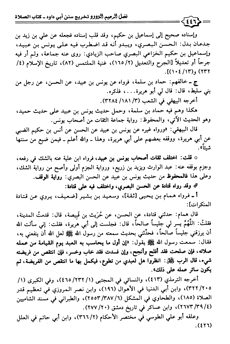 قال همام: حدثني قتادة، عن الحسن، عن حُرَيث بن قَبِيصة، قال: قدمتُ المدينة، فقلتُ: اللَّهُمَّ يسر لي جليسًا صالحًا، قال: فجلست إلى أبي هريرة، فقلت: إني سألت الله أن يرزقني جليسًا صالحًا، فحدِّثني بحديث سمعته من رسول الله - صلى الله عليه وسلم - لعل الله أن ينفعني به، فقال: سمعت رسول الله - صلى الله عليه وسلم - يقول: "إن أول ما يحاسب به العبد يوم القيامة من عمله صلاته، فإن صلحت فقد أفلح وأنجح، وإن فسدت فقد خاب وخسر، فإن انتقص من فريضته شيء، قال الرب - عز وجل -: انظروا هل لعبدي من تطوع، فيكمل بها ما انتقص من الفريضة، ثمَّ يكون سائر عمله على ذلك".