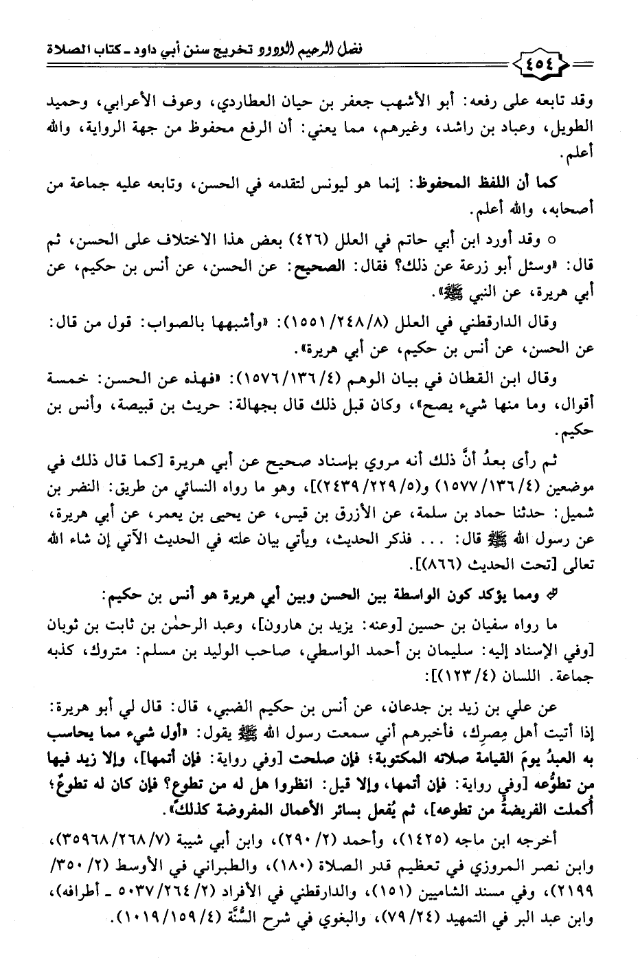 • وقد أورد ابن أبي حاتم في العلل (٤٢٦) بعض هذا الاختلاف على الحسن، ثمَّ قال: "وسئل أبو زرعة عن ذلك؟ فقال: الصحيح: عن الحسن، عن أنس بن حكيم، عن أبي هريرة، عن النبي - صلى الله عليه وسلم -".