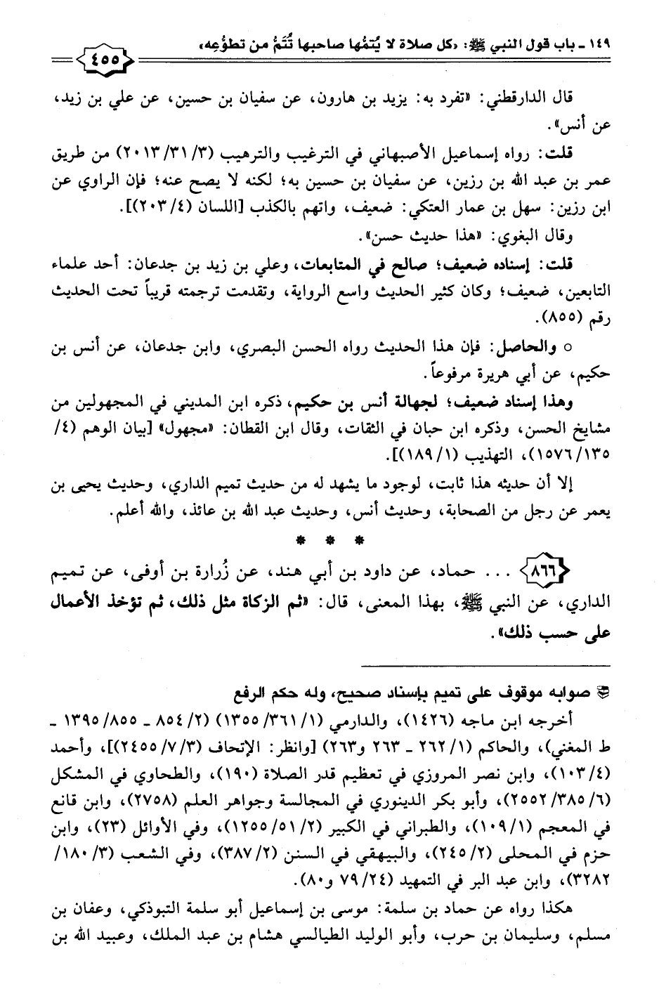٨٦٦ - . . . حماد، عن داود بن أبي هند، عن زُرارة بن أوفى، عن تميم الداري، عن النبي - صلى الله عليه وسلم -، بهذا المعنى، قال: "ثمَّ الزكاة مثل ذلك، ثمَّ تؤخذ الأعمال على حسب ذلك".