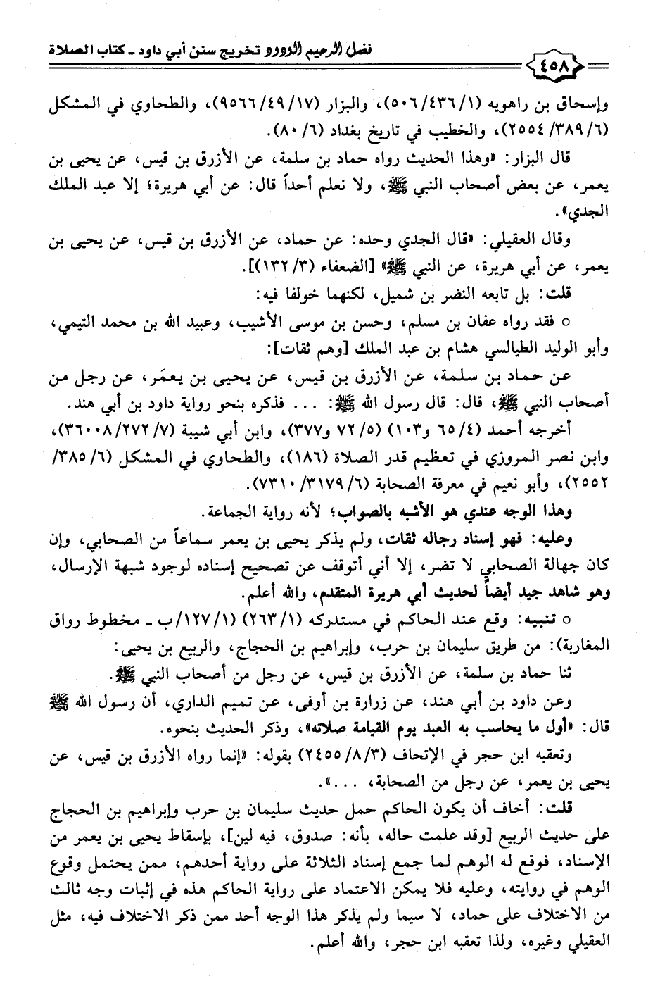 عن حماد بن سلمة، عن الأزرق بن قيس، عن يحيى بن يعمَر، عن رجل من أصحاب النبي - صلى الله عليه وسلم -، قال: قال رسول الله - صلى الله عليه وسلم -: ... فذكره بنحو رواية داود بن أبي هند.