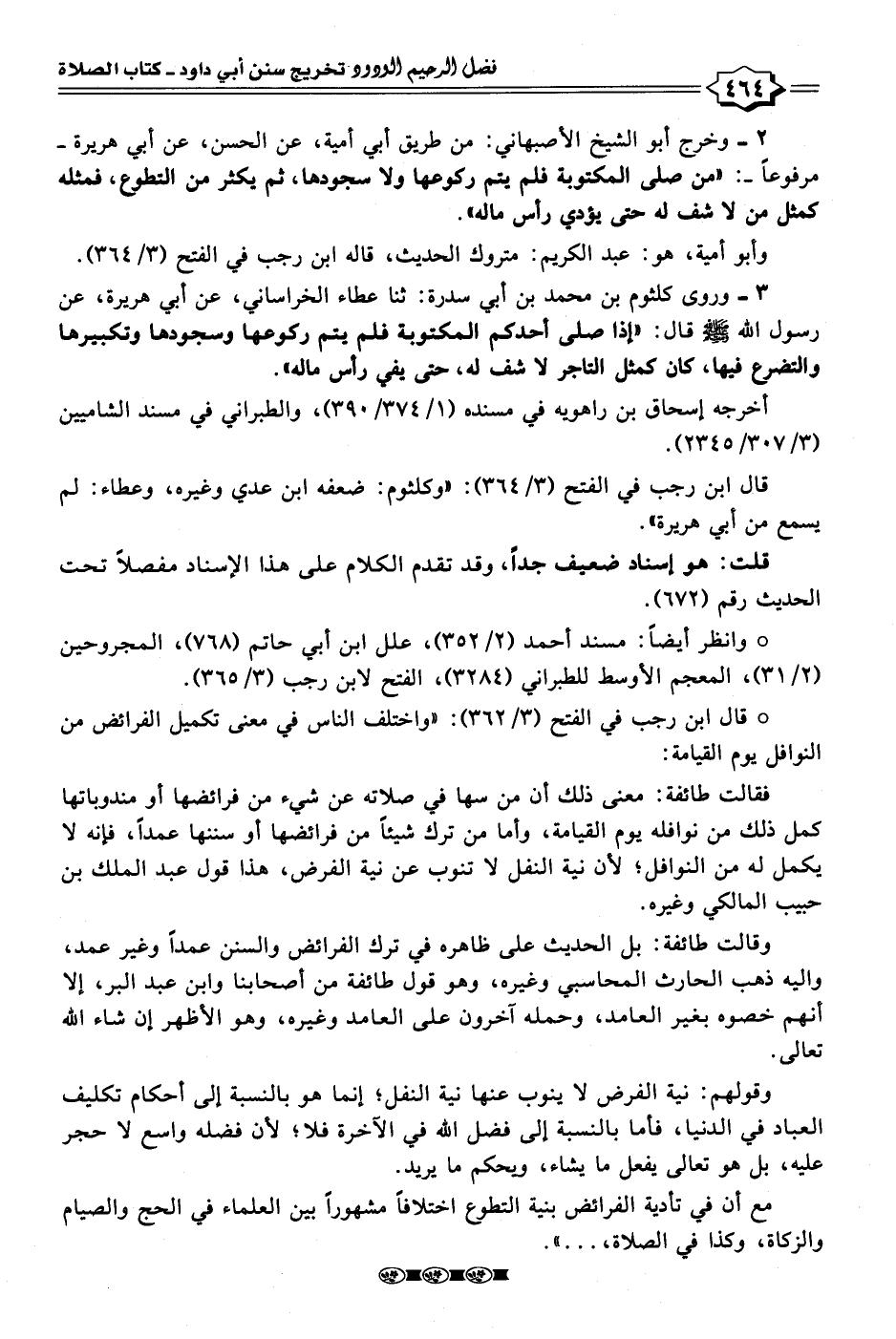 • وانظر أيضًا: مسند أحمد (٢/ ٣٥٢)، علل ابن أبي حاتم (٧٦٨)، المجروحين (٢/ ٣١)، المعجم الأوسط للطبراني (٣٢٨٤)، الفتح لابن رجب (٣/ ٣٦٥).