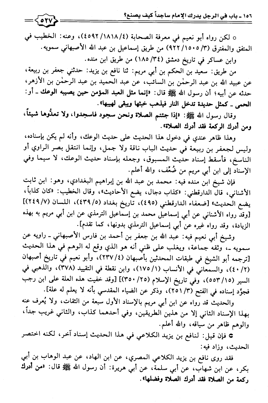 وهذا ظاهر عندي في دخول هذا الحديث على حديث الوعك، وأنه لم يكن بإسناده، وليس لجعفر بن ربيعة في حديث الباب ناقة ولا جمل، وإنما انتقل بصر الراوي أو الناسخ، فأسقط إسناد حديث المسبوق، وجعله بإسناد حديث الوعك، لا سيما وفي الإسناد إلى ابن أبي مريم من ضُعِّف، والله أعلم.