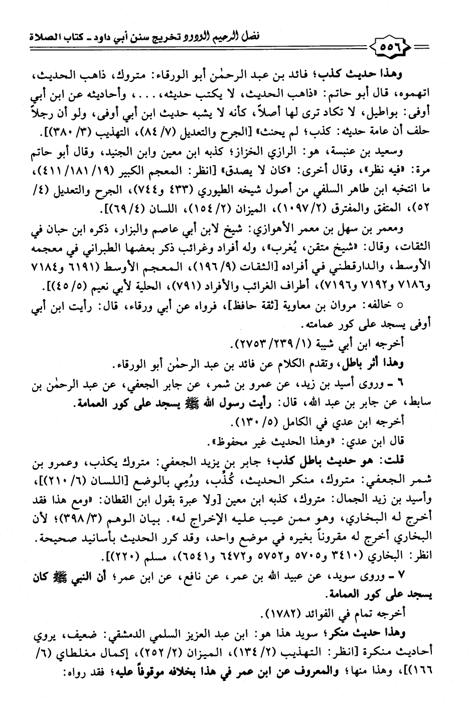 ٦ - وروى أسيد بن زيد، عن عمرو بن شمر، عن جابر الجعفي، عن عبد الرحمن بن سابط، عن جابر بن عبد الله، قال: رأيت رسول الله - صلى الله عليه وسلم - يسجد على كور العمامة.