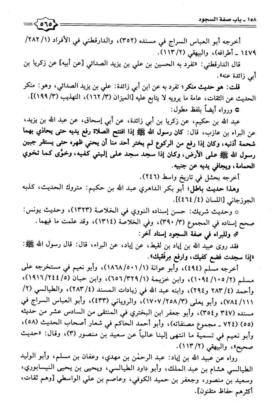 فقد روى عبيد الله بن إياد بن لقيط، عن إياد، عن البراء، قال: قال رسول الله - صلى الله عليه وسلم -: "إذا سجدت فضع كفيك، وارفع مِرفَقيك".