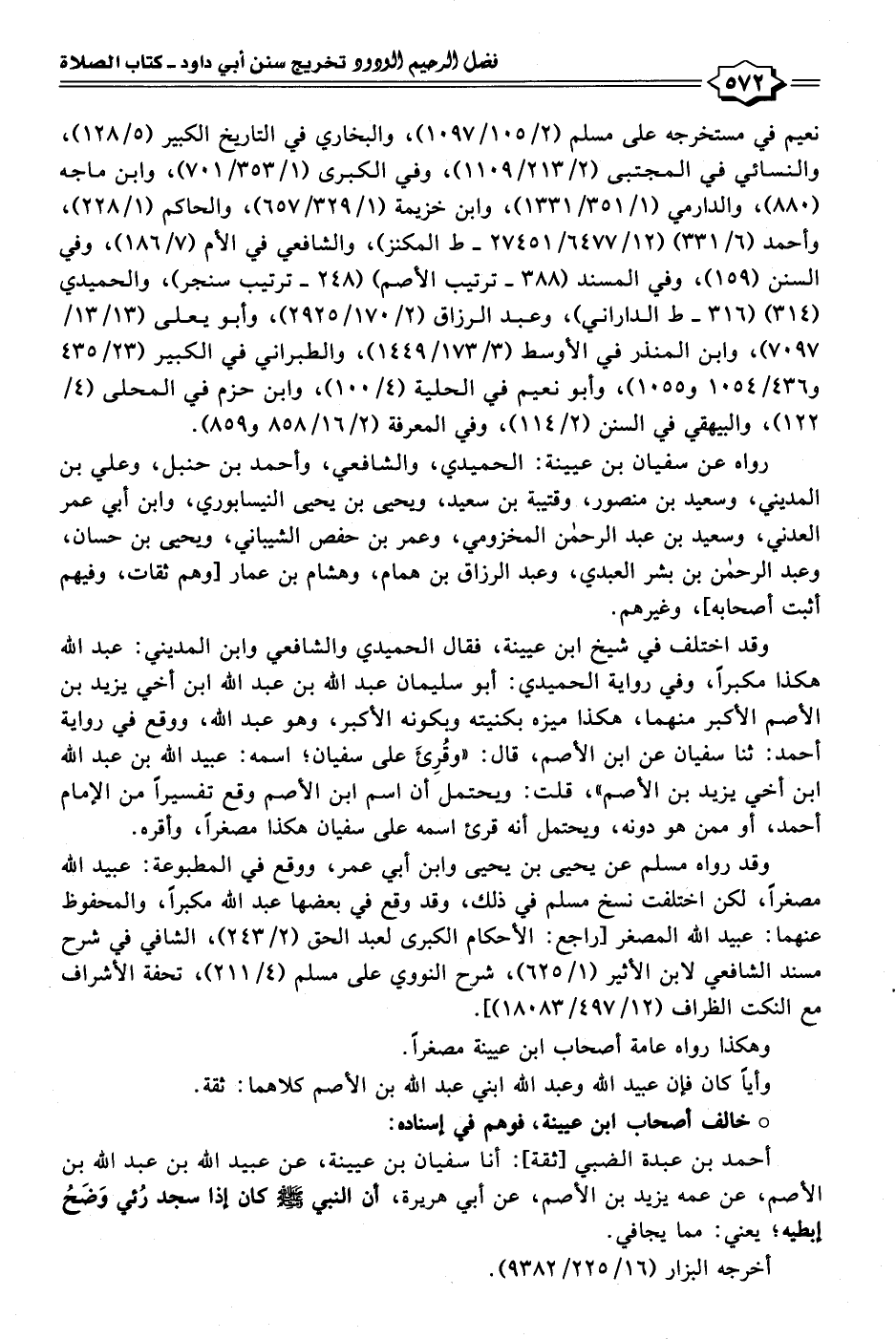 أحمد بن عبدة الضبي [ثقة]: أنا سفيان بن عيينة، عن عبيد الله بن عبد الله بن الأصم، عن عمه يزيد بن الأصم، عن أبي هريرة، أن النبي - صلى الله عليه وسلم - كان إذا سجد رُئي وَضَحُ إبطيه؛ يعني: مما يجافي.
