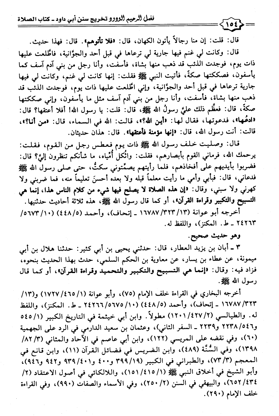 ٣ - أبان بن يزيد العطار، قال: حدثني يحيى بن أبي كثير: حدثنا هلال بن أبي ميمونة، عن عطاء بن يسار، عن معاوية بن الحكم السلمي، حدث بهذا الحديث بنحوه، فزاد فيه: وقال: "إنما هي التسبيح والتكبير والتحميد وقراءة القرآن"، أو كما قال رسول الله - صلى الله عليه وسلم -.