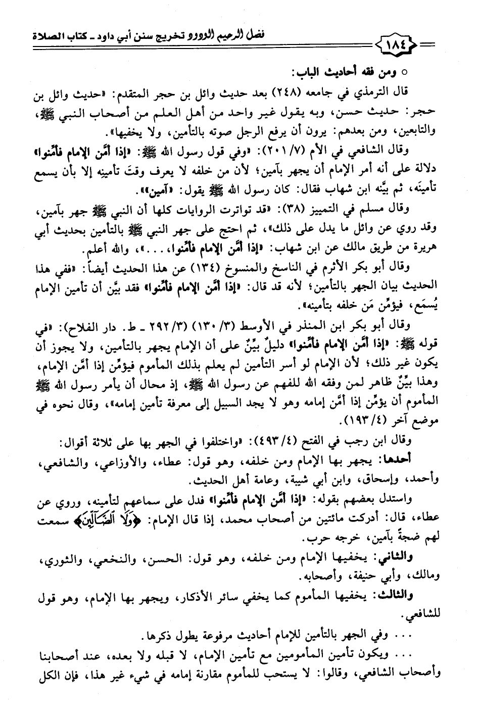 قال الترمذي في جامعه (٢٤٨) بعد حديث وائل بن حجر المتقدم: "حديث وائل بن حجر: حديث حسن، وبه يقول غير واحد من أهل العلم من أصحاب النبي - صلى الله عليه وسلم -، والتابعين، ومن بعدهم: يرون أن يرفع الرجل صوته بالتأمين، ولا يخفيها".