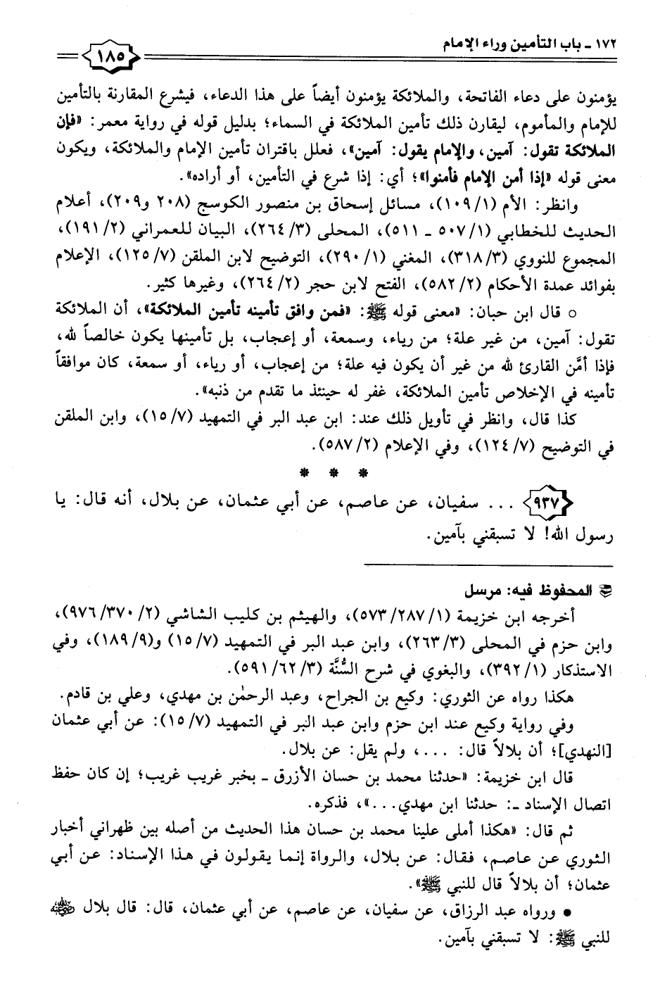 ٩٣٧ - سفيان، عن عاصم، عن أبي عثمان، عن بلال، أنه قال: يا رسول الله! لا تسبقني بآمين.