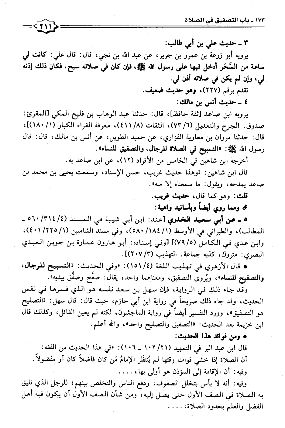 • قال الأزهري في تهذيب اللغة (٤/ ١٥١): "وفي الحديث: "التسبيح للرجال، والتصفيح للنساء"، ويُروى التصفيق، ومعناهما واحد، يقال: صفَّح وصفَّق بيديه".