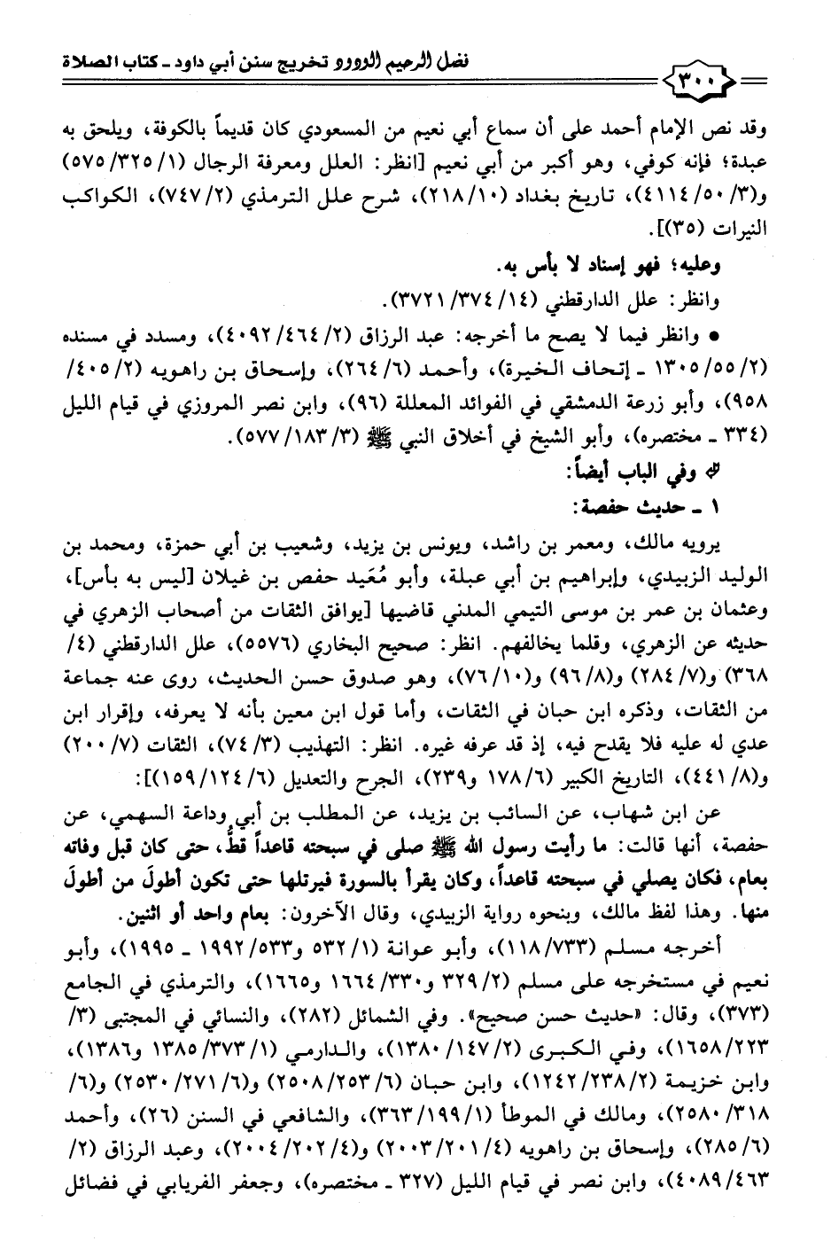 • وانظر فيما لا يصح ما أخرجه: عبد الرزاق (٢/ ٤٦٤/ ٤٠٩٢)، ومسدد في مسنده (٢/ ٥٥/ ١٣٠٥ - إتحاف الخيرة)، وأحمد (٦/ ٢٦٤)، وإسحاق بن راهويه (٢/ ٤٠٥/ ٩٥٨)، وأبو زرعة الدمشقي في الفوائد المعللة (٩٦)، وابن نصر المروزي في قيام الليل (٣٣٤ - مختصره)، وأبو الشيخ في أخلاق النبي - صلى الله عليه وسلم - (٣/ ١٨٣/ ٥٧٧).