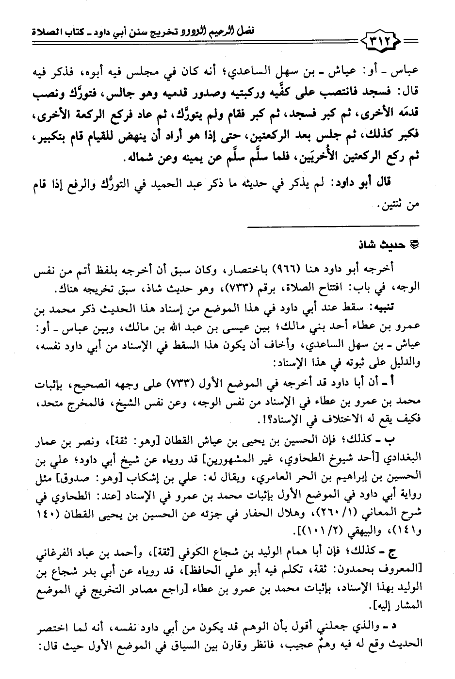 قال أبو داود: لم يذكر في حديثه ما ذكر عبد الحميد في التورُّك والرفع إذا قام من ثنتين.