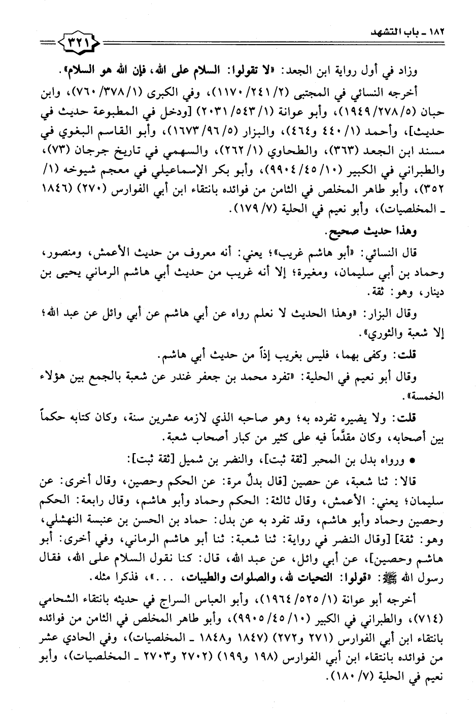 وزاد في أول رواية ابن الجعد: "لا تقولوا: السلام على الله، فإن الله هو السلام".