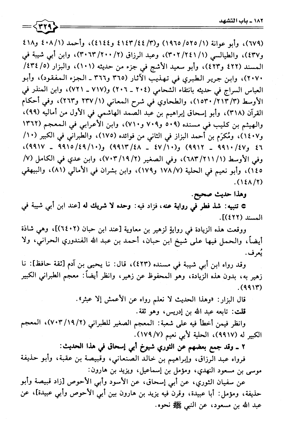 • تنبيه: شذ فطر في رواية عنه، فزاد فيه: وحده لا شريك له [عند ابن أبي شيبة في المسند (٤٢٢)].