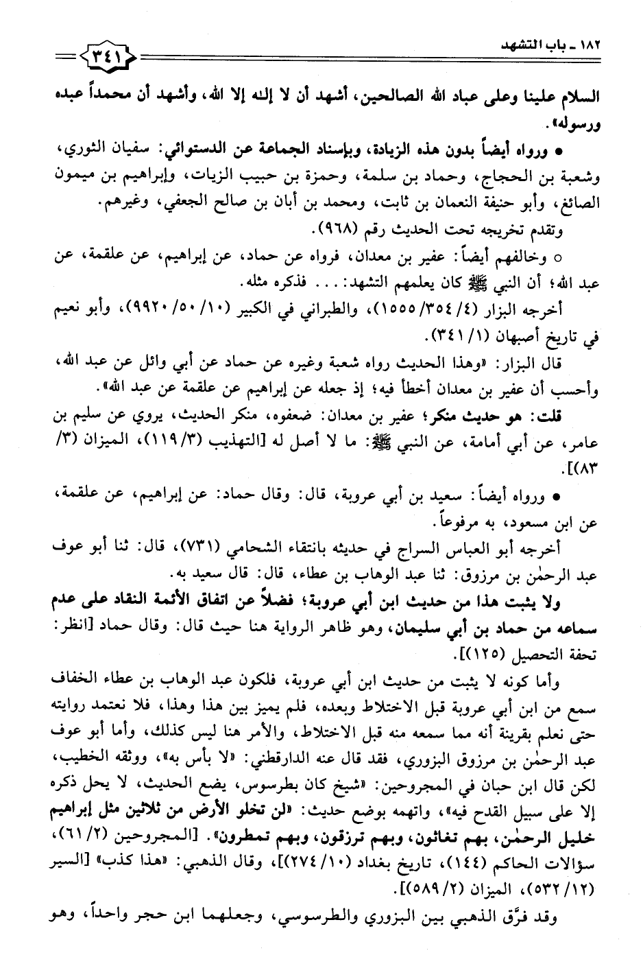 • وخالفهم أيضًا: عفير بن معدان، فرواه عن حماد، عن إبراهيم، عن علقمة، عن عبد الله؛ أن النبي - صلى الله عليه وسلم - كان يعلمهم التشهد: ... فذكره مثله.