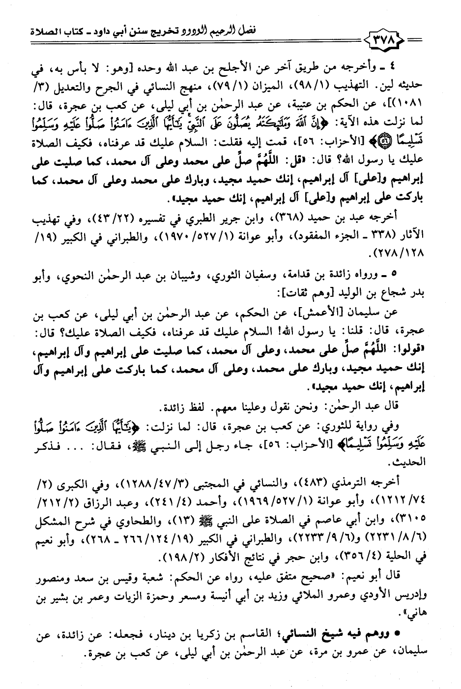 أخرجه الترمذي (٤٨٣)، والنسائي في المجتبى (٣/ ٤٧/ ١٢٨٨)، وفي الكبرى (٢/ ٧٤/ ١٢١٢)، وأبو عوانة (١/ ٥٢٧/ ١٩٦٩)، وأحمد (٤/ ٢٤١)، وعبد الرزاق (٢/ ٢١٢/ ٣١٠٥)، وابن أبي عاصم في الصلاة على النبي - صلى الله عليه وسلم - (١٣)، والطحاوي في شرح المشكل (٦/ ٨/ ٢٢٣١) و (٦/ ٩/ ٢٢٣٣)، والطبراني في الكبير (١٩/ ١٢٤/ ٢٦٦ - ٢٦٨)، وأبو نعيم في الحلية (٤/ ٣٥٦)، وابن حجر في نتائج الأفكار (٢/ ١٩٨).