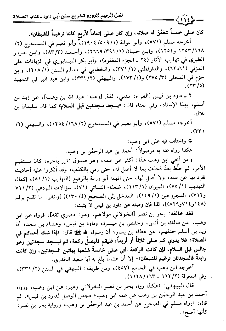 قال البيهقي: "هكذا رواه بحر بن نصر الخولاني وغيره عن ابن وهب، ورواه أحمد بن عبد الرحمن بن وهب عن عمه ابن وهب؛ فجعل الوصل لداود بن قيس"، ثم قال: "رواه مسلم في الصحيح عن أحمد بن عبد الرحمن بن وهب، ورواية بحر بن نصر: كأنها أصح".