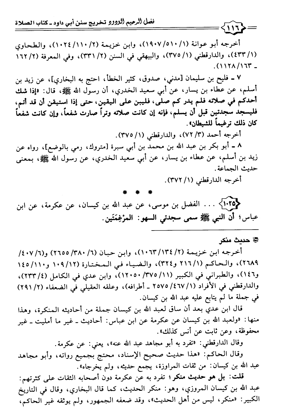 ١٠٢٥ - . . . الفضل بن موسى، عن عبد الله بن كيسان، عن عكرمة، عن ابن عباس؛ أن النبي - صلى الله عليه وسلم - سمى سجدتي السهو: المرْغِمَتَين.