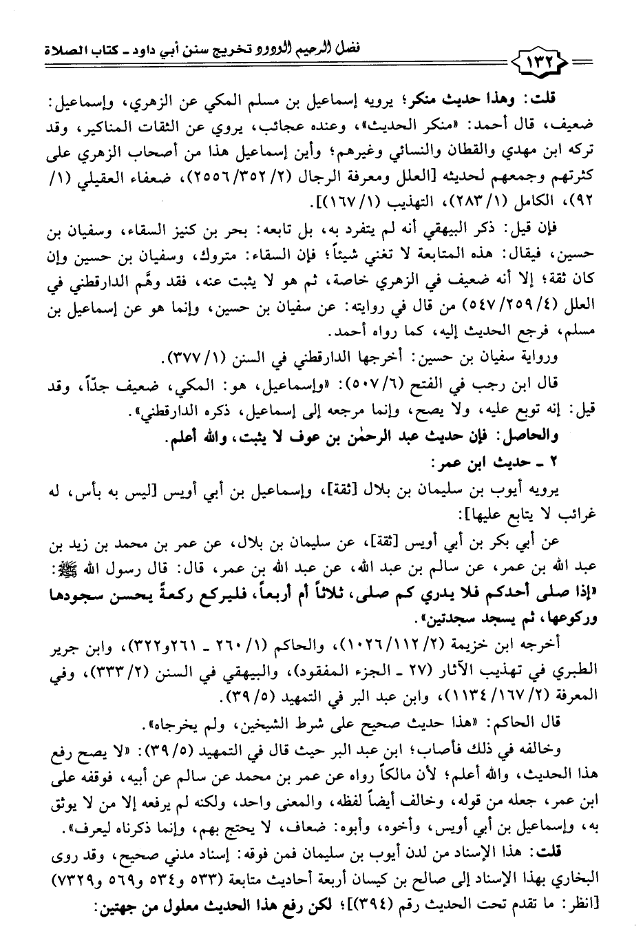 عن أبي بكر بن أبي أويس [ثقة]، عن سليمان بن بلال، عن عمر بن محمد بن زيد بن عبد الله بن عمر، عن سالم بن عبد الله، عن عبد الله بن عمر، قال: قال رسول الله - صلى الله عليه وسلم -: "إذا صلى أحدكم فلا يدري كم صلى، ثلاثًا أم أربعًا، فليركع ركعة يحسن سجودها وركوعها، ثم يسجد سجدتين".