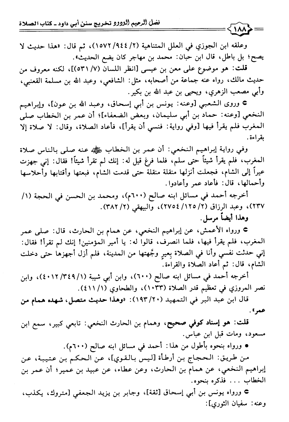 ورواه الأعمش، عن إبراهيم النخعي، عن همام بن الحارث، قال: صلى عمر المغرب، فلم يقرأ فيها، فلما انصرف، قالوا له: يا أمير المؤمنين! إنك لم تقرأ! فقال: إني حدثت نفسي وأنا في الصلاة بِعيرٍ وجَّهتها من المدينة، فلم أزل أجهزها حتى دخلت الشام، قال: ثم أعاد الصلاة والقراءة.