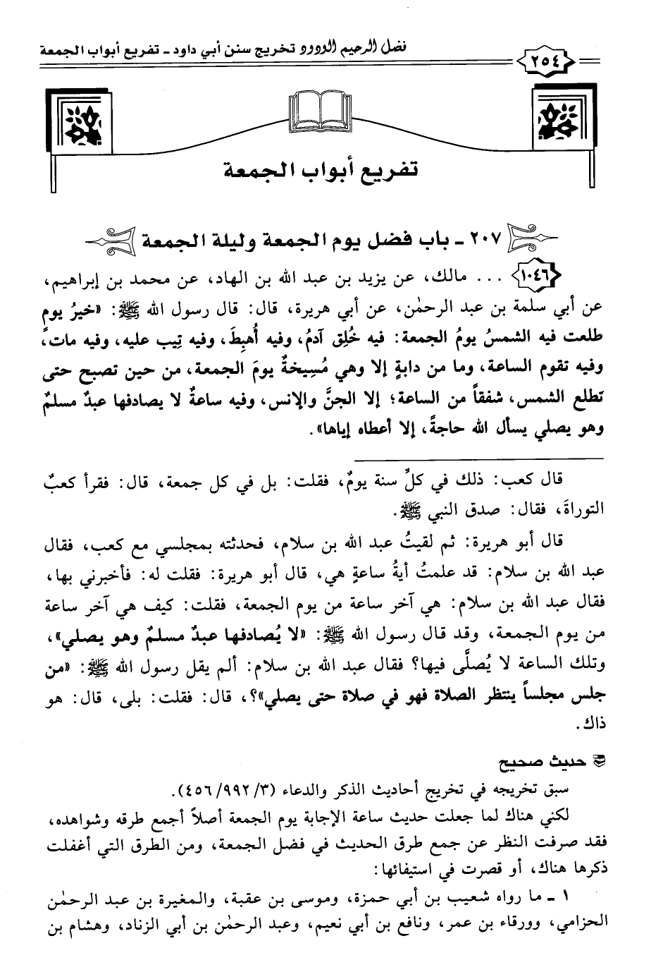 لكني هناك لما جعلت حديث ساعة الإجابة يوم الجمعة أصلًا أجمع طرقه وشواهده، فقد صرفت النظر عن جمع طرق الحديث في فضل الجمعة، ومن الطرق التي أغفلت ذكرها هناك، أو قصرت في استيفائها: