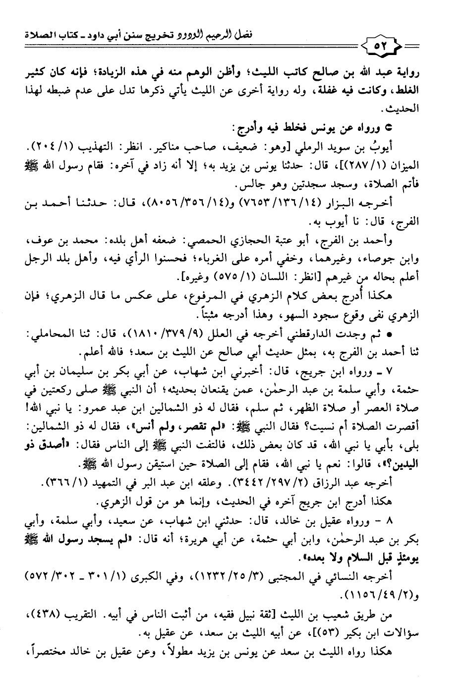 ٨ - ورواه عقيل بن خالد، قال: حدثني ابن شهاب، عن سعيد، وأبي سلمة، وأبي بكر بن عبد الرحمن، وابن أبى حثمة، عن أبى هريرة؛ أنه قال: "لم يسجد رسول الله - صلى الله عليه وسلم - يومئذٍ قبل السلام ولا بعده".